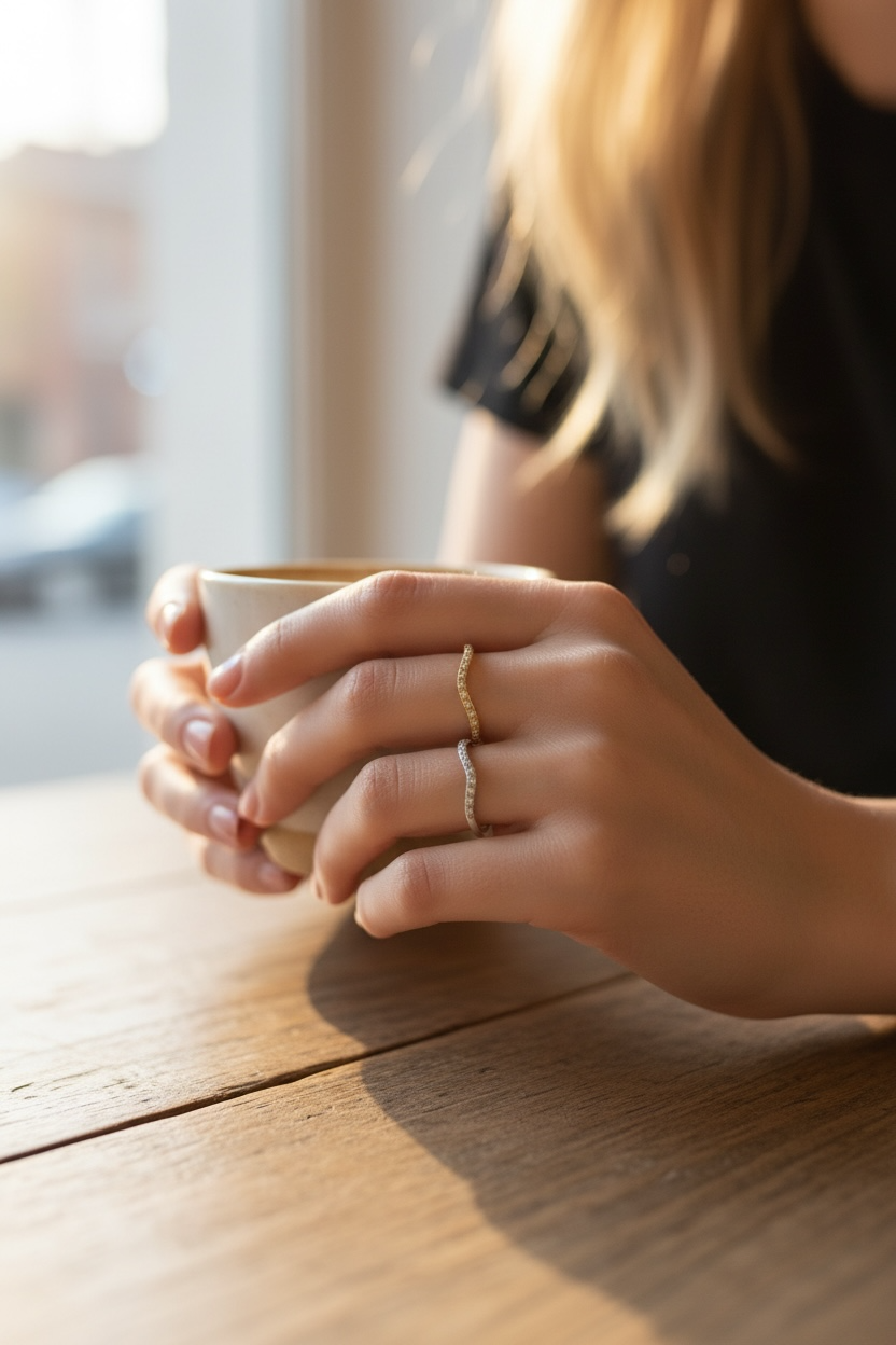 L’Anello Wave è un anello sottile e luminoso, caratterizzato da una delicata curvatura a onda impreziosita da piccoli zirconi incastonati. Il design minimal e raffinato lo rende perfetto da indossare da solo o abbinato ad altri anelli per creare combinazioni eleganti.