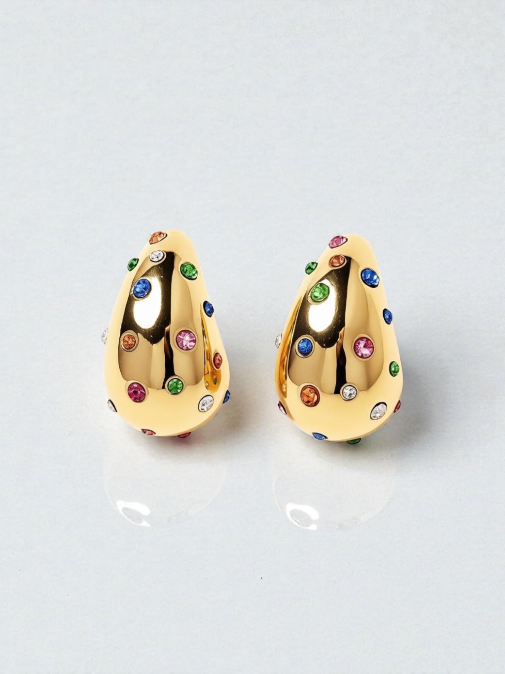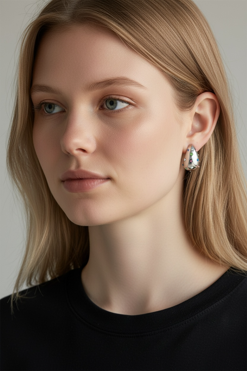 Gli Orecchini Color Drop si distinguono per la loro forma a goccia dal finish lucido, impreziosita da zirconi multicolor incastonati che donano luce e carattere al design. Un gioiello vivace ma elegante, perfetto per chi ama farsi notare con stile.